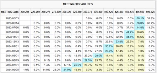 市場は、次のFOMCで利上げはしないと予想しています。そして9月から利下げすることを織り込んでいます。これは楽観的すぎると思います。FRBは過去の失敗の教訓があるからそう簡単に利下げはしないですよ。利下げがないとなると市場は落胆して株は下落す…